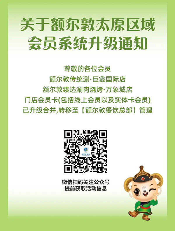 【重要通知】太原區會員系統升級 & 草原燒烤限時上線!